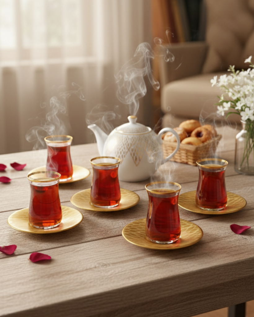 Isıya Dayanıklı Borosilikat Cam Sürahi ve 4’lü Fincan Takımı – Sıcak & Soğuk İçecek Seti