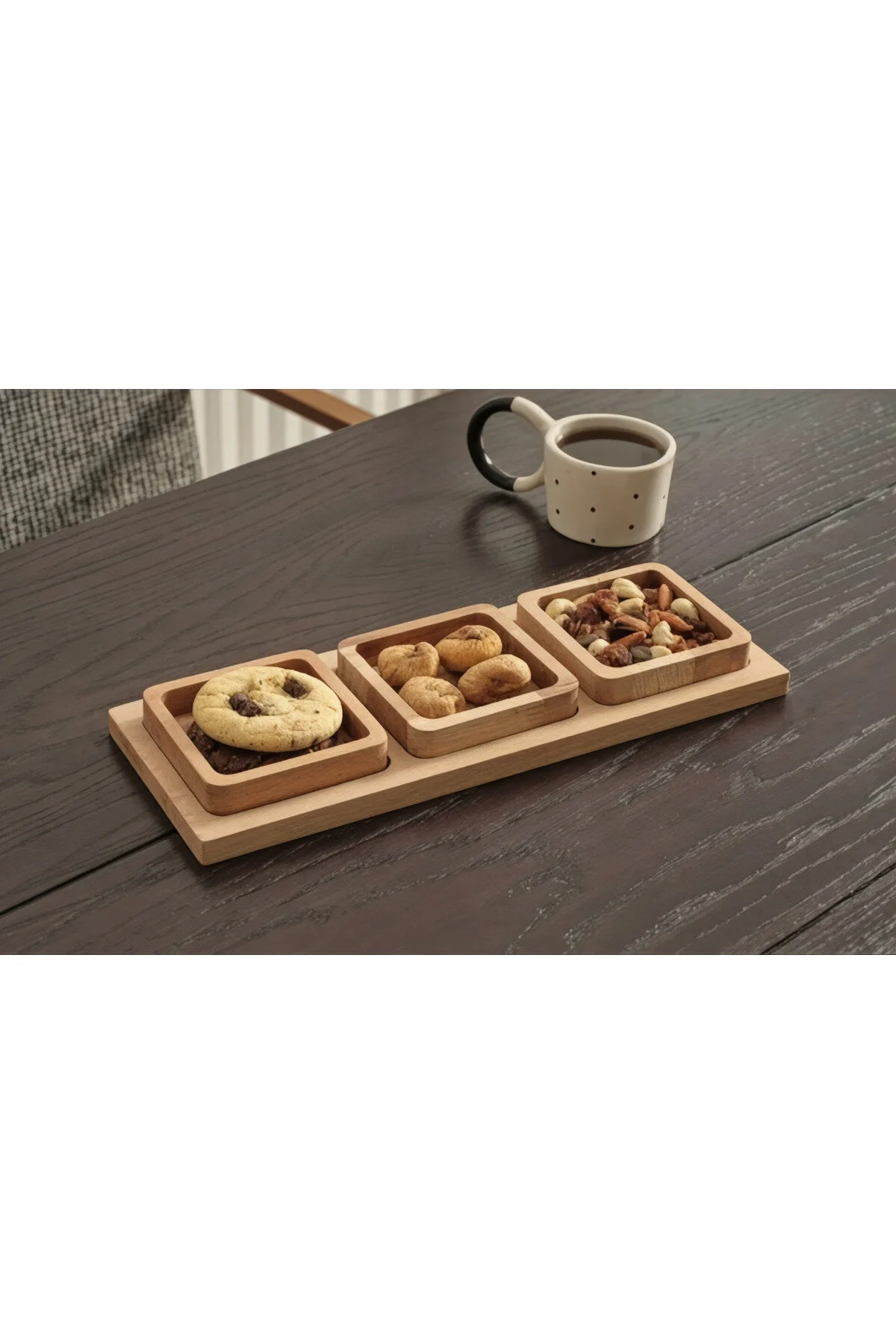 Misafirlerinize veya kendinize hazırladığınız ikramlıkları sıradanlıktan çıkarıp göz alıcı bir şölene dönüştürmek istemez misiniz? Doğal ahşap dokusu ve minimalist tasarımı bir araya getiren bu 4 parçalık sunum seti ile sofralarınızda fark yaratın.